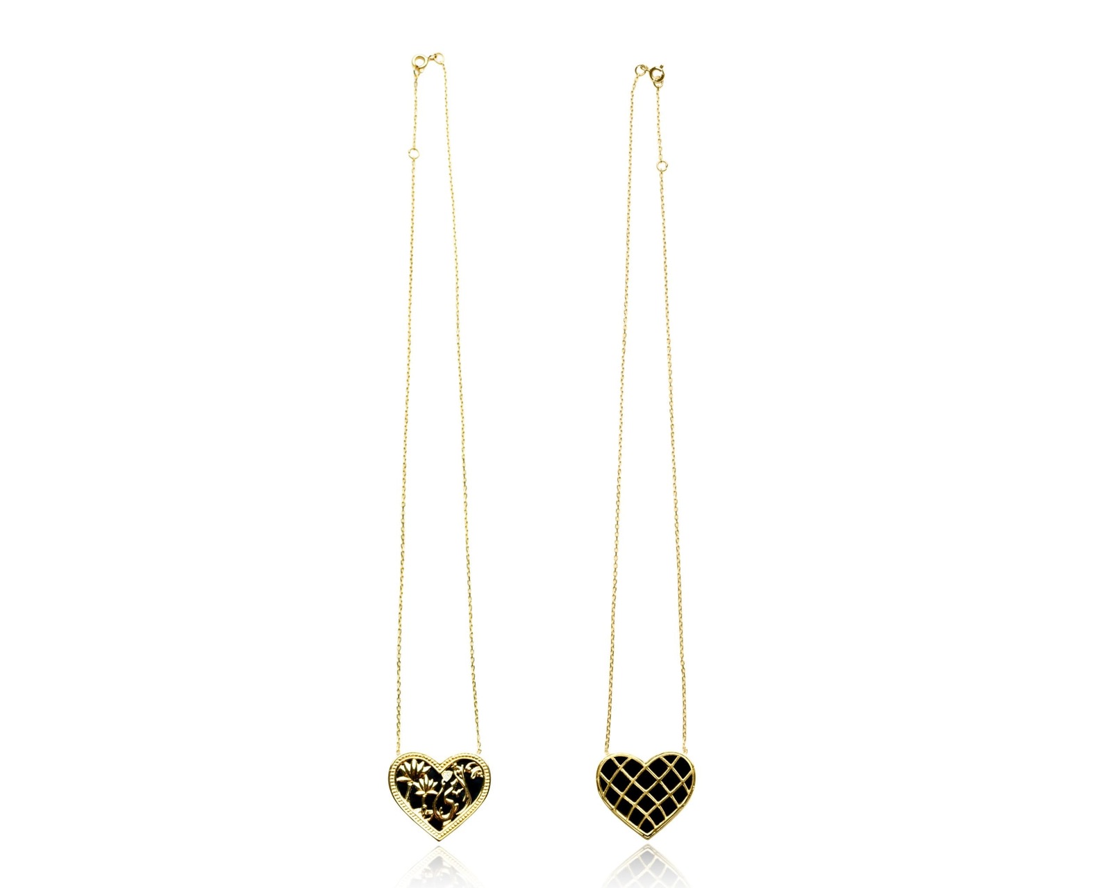 Express your love for the dearest person to your heart with a heart-shaped necklace with a black stone featuring the word "Mom" engraved in yellow gold. You can wear this necklace on both sides.