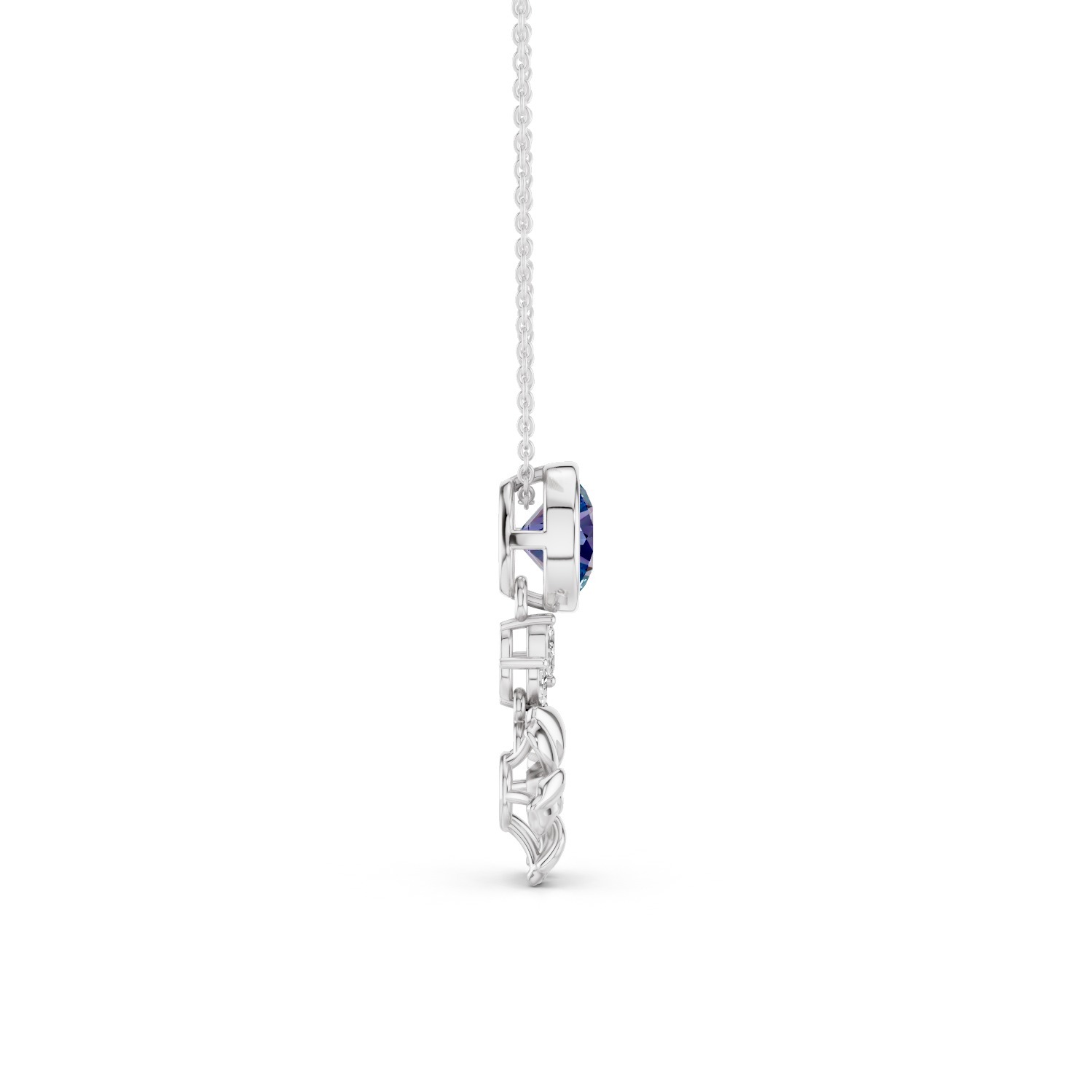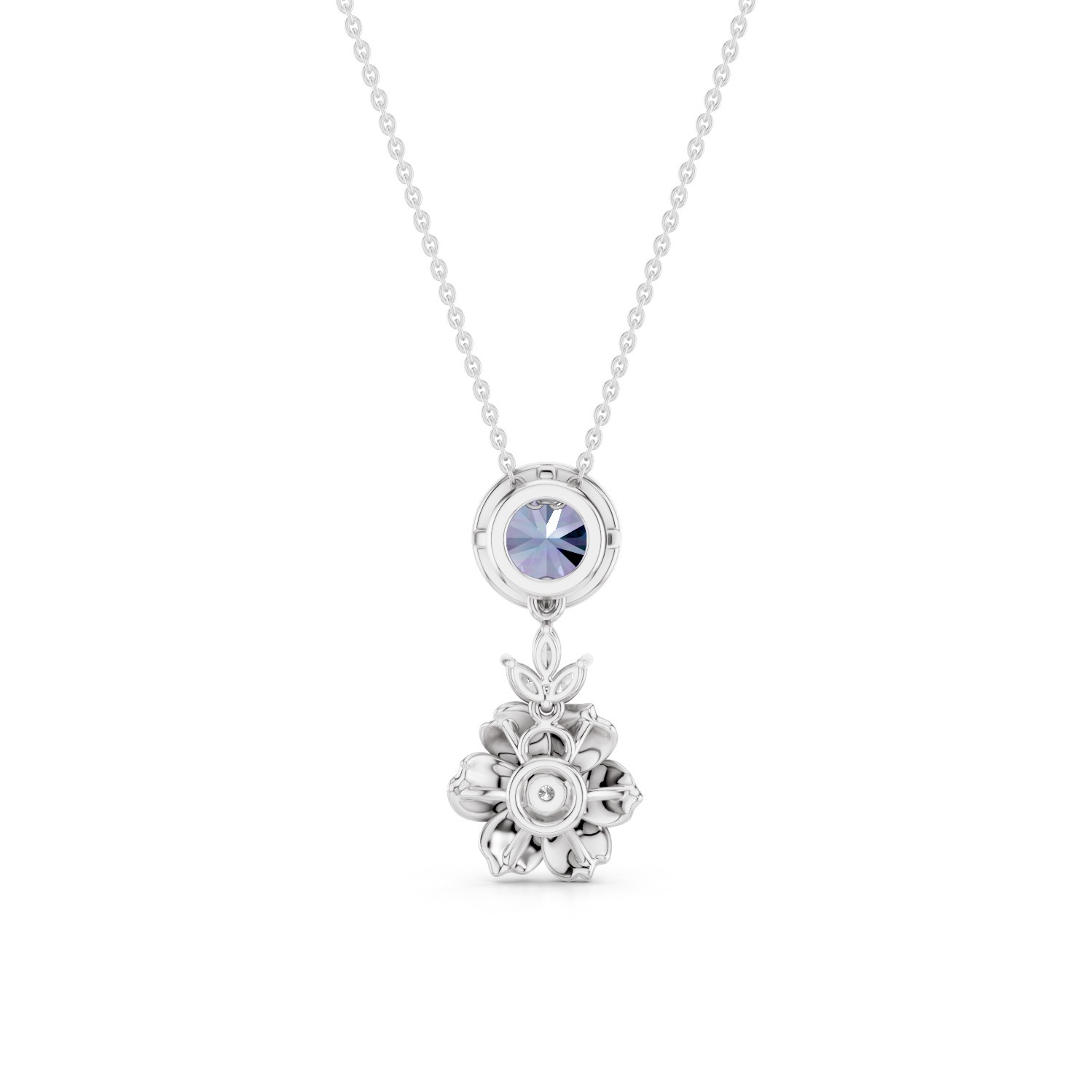 Ocean light is a pendant that captures the calm beauty of the sea. The centerpiece is radiant blue stone that glimmers like sunlight dancing on ocean waves. Beneath it, a delicate floral motif adds softness and grace.