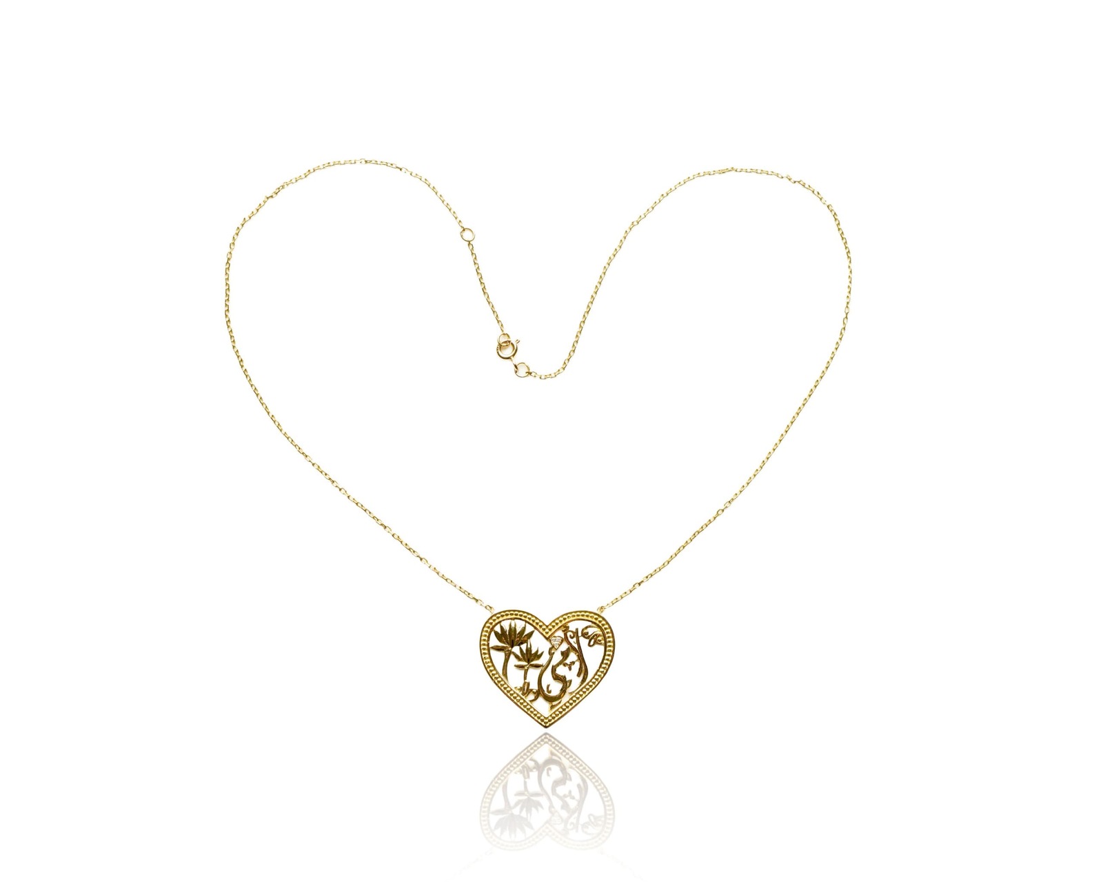 Express your love for the dearest person to your heart with a heart-shaped necklace featuring the word "Mom" engraved in yellow gold.