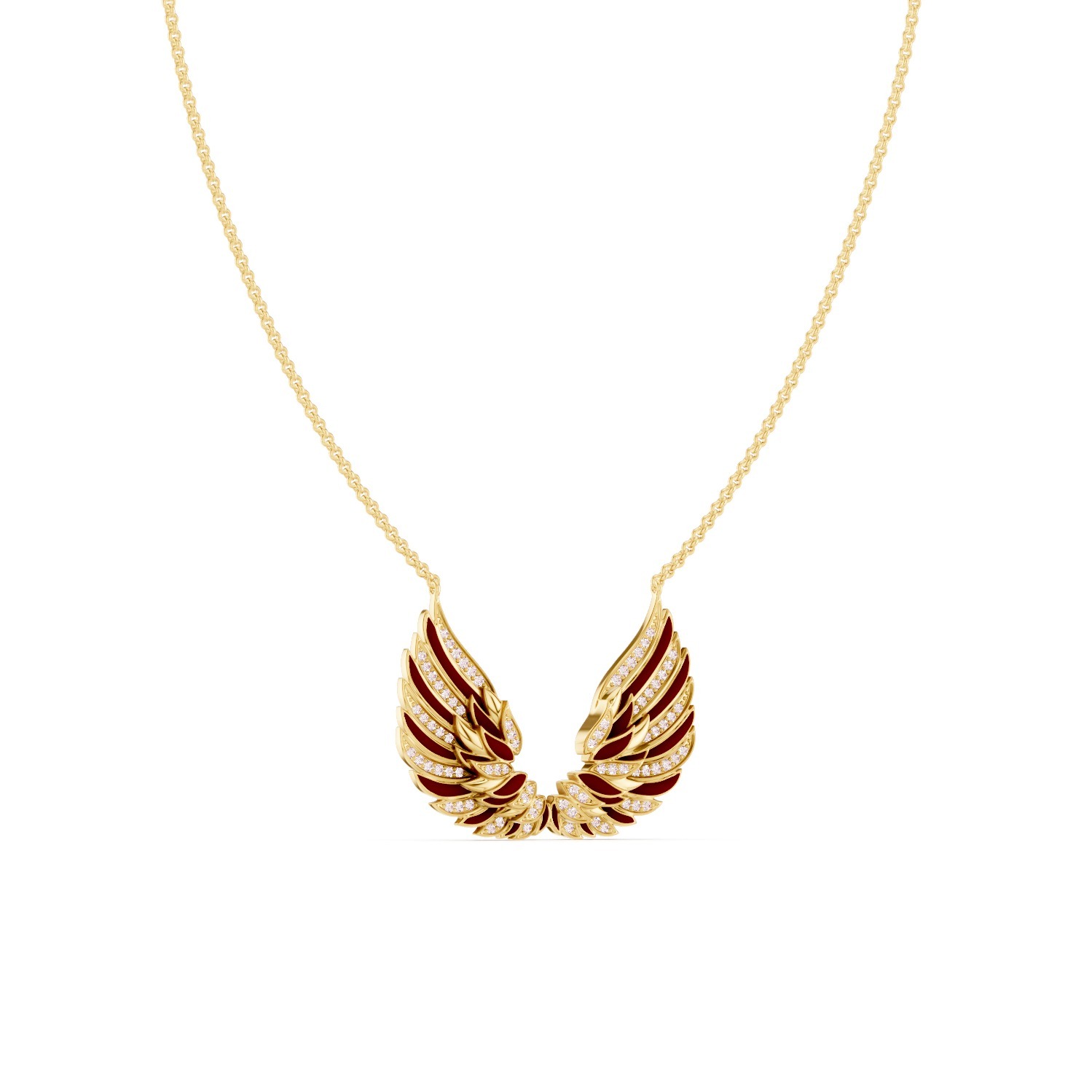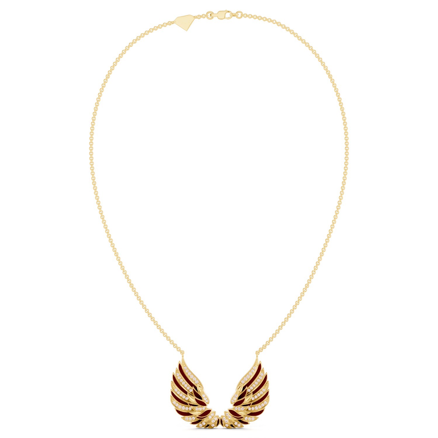 The wings of power in red enamel embody prestige, energy, and passion. The deep red color gives them a bold presence and luxurious shine, expressing acquired strength and indomitable confidence.