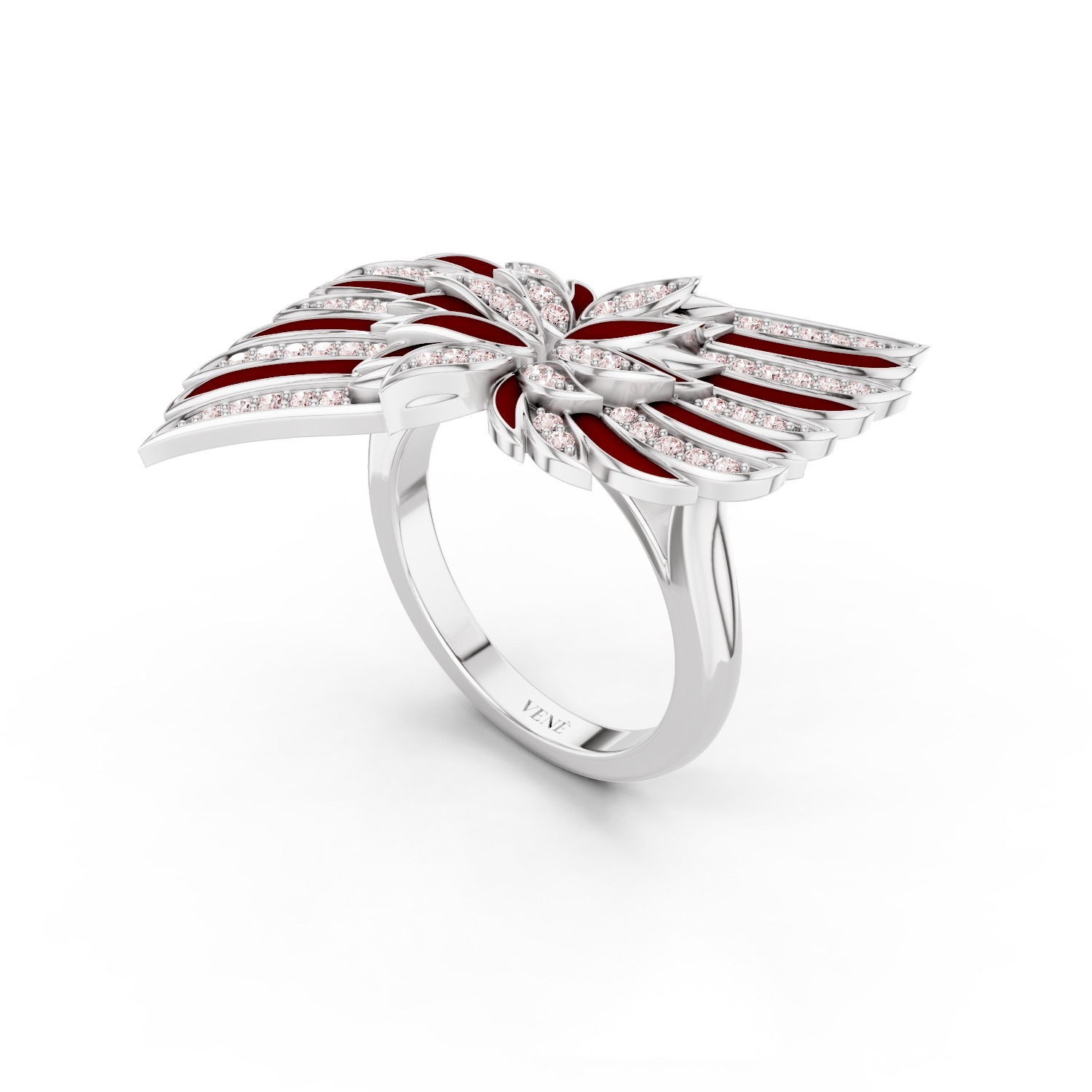 The wings of power in red enamel embody prestige, energy, and passion. The deep red color gives them a bold presence and luxurious shine, expressing acquired strength and indomitable confidence.